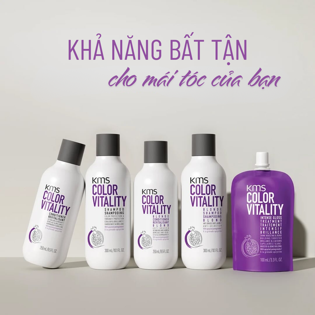 * KMS Color Vitality giữ màu tóc lâu hơn gấp ba lần so với các sản phẩm không có lớp bảo vệ COLORVITALITY procolor khi sử dụng Dầu gội và Dầu xả COLORVITALITY