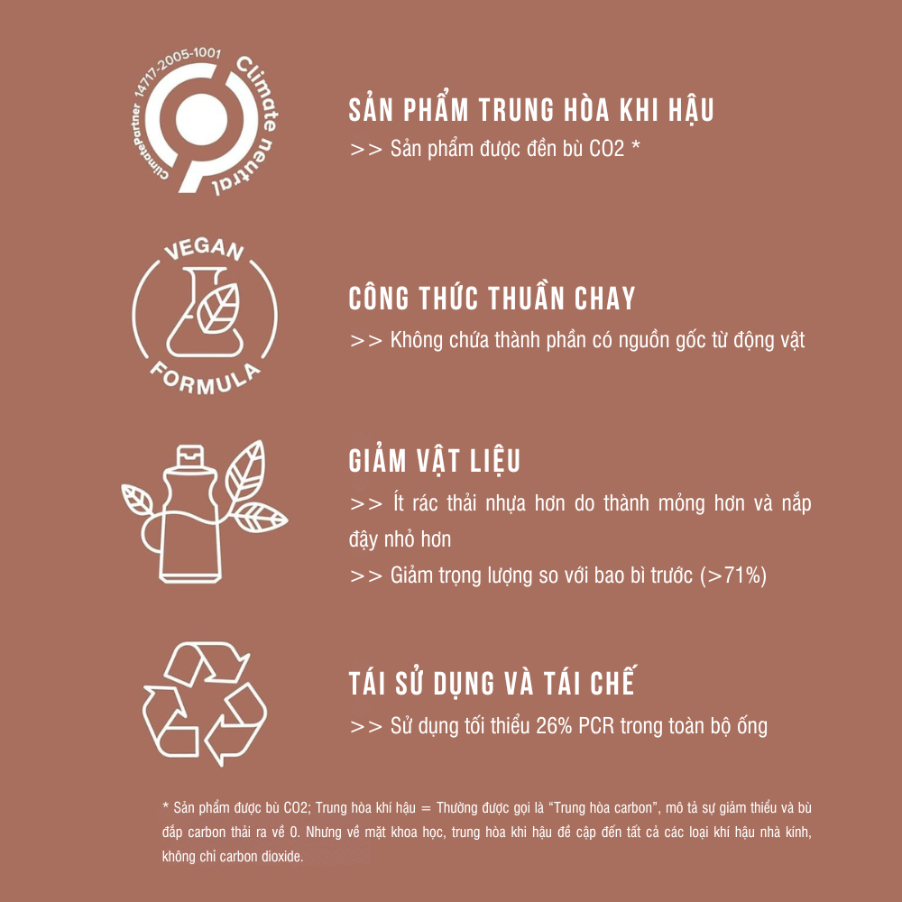 - Sử dụng tối thiểu 26% (=kích thước bán lẻ; kích thước du lịch 23%) vật